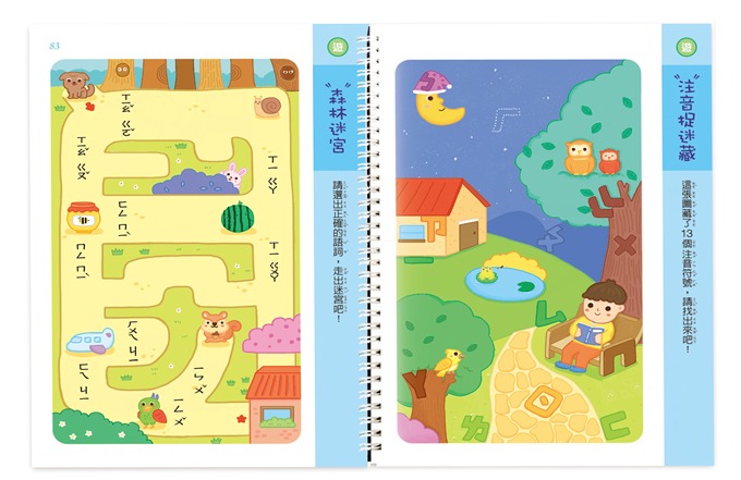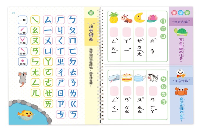 1. 聲母教學練習:帶領孩子逐頁學習上半頁的聲母,直到發音正確為止。