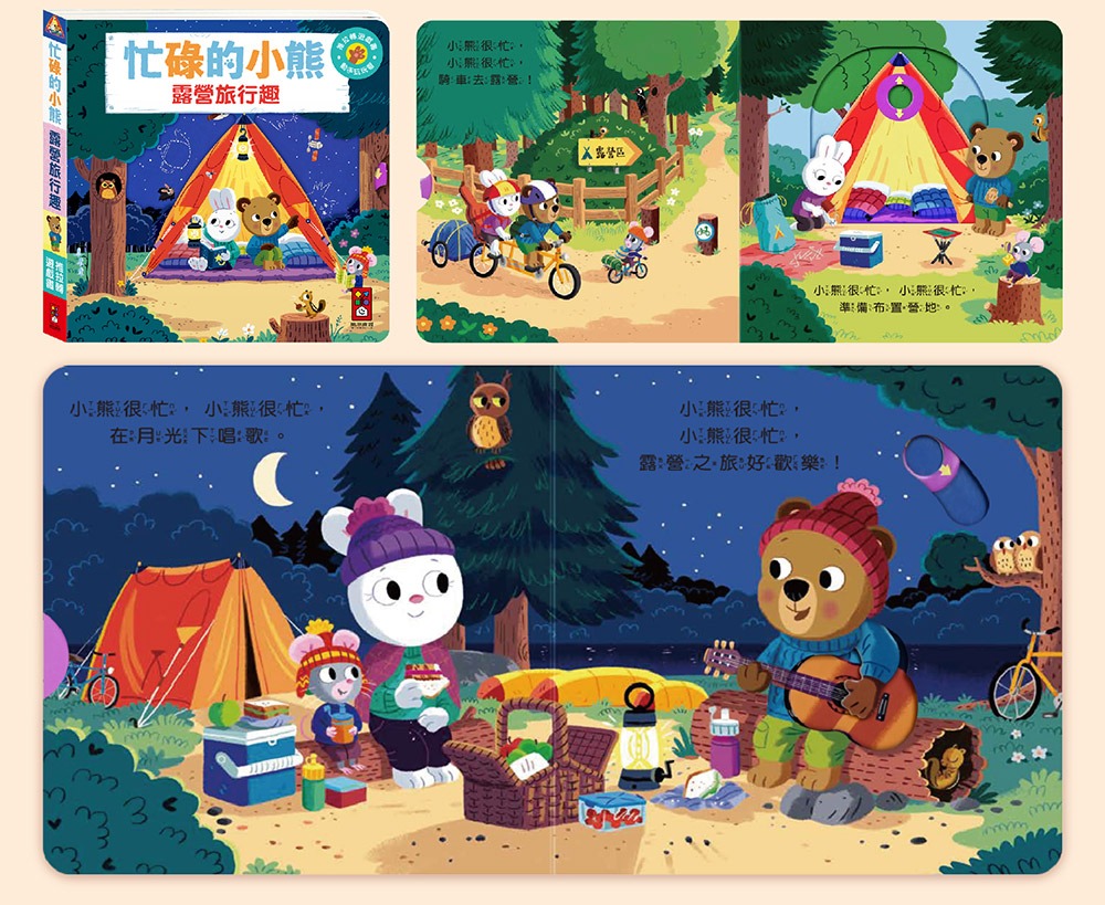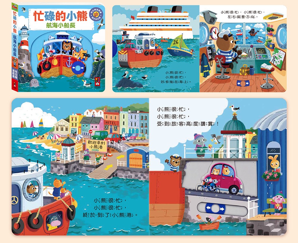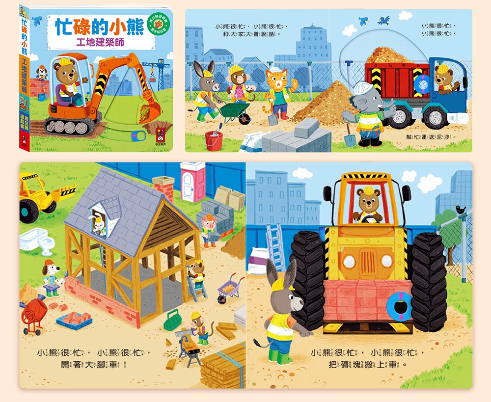 繪本鮮豔精緻的插圖吸引孩子目光,刺激孩子閱讀慾望,一起和忙碌的小熊探索生活不同風景,從閱讀跟遊戲中探索世界。