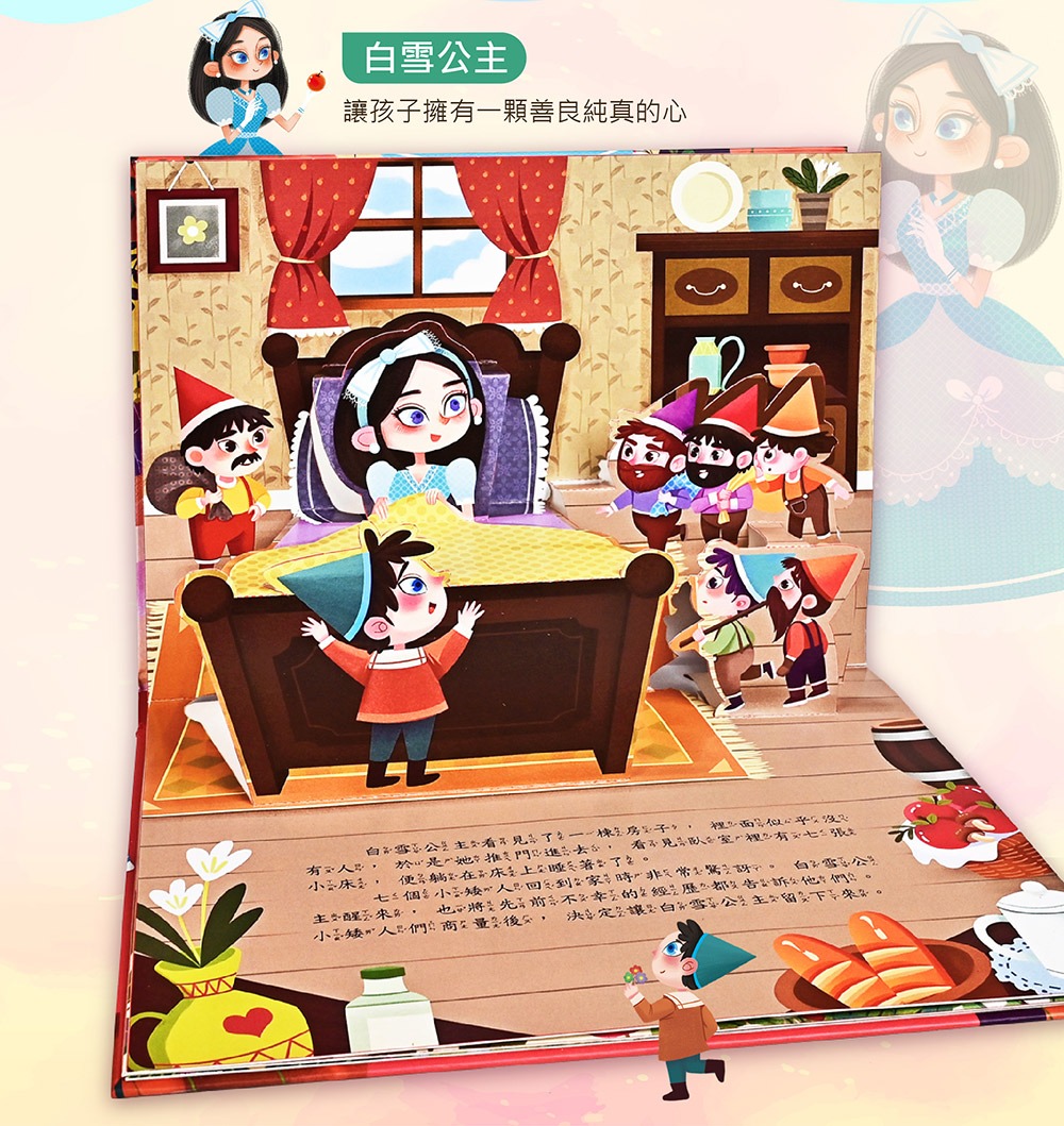 膾炙人口且經典的格林童話,利用簡單且生動的文字吸引孩子閱讀,精美的插圖加上多層次的3D立體剪裁,翻開即能展現立體效果,不僅能抓住孩子目光,同時刺激視覺發展,彷彿置身於童話世界中,享受驚喜的閱讀之旅。