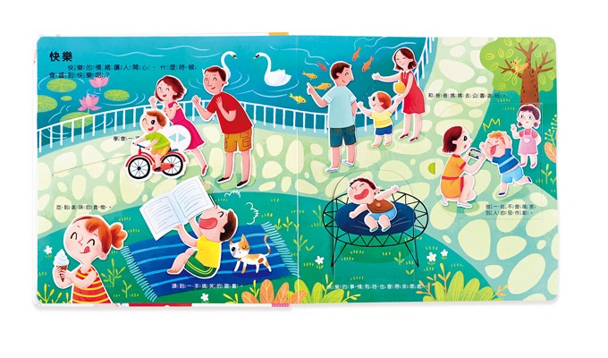 本書利用淺顯易懂的文字,搭配場合、情境,教導孩子在日常生活中若遇到不同的狀況與事件,會產生哪些情緒、應該如何處理情緒。貼切的情境設計使孩子在閱讀中就能感同身受,但同時教授孩子情緒並非只要發洩出來就好,必須要學會如何控管、如何適當表達、如何排解自己的負面情緒。