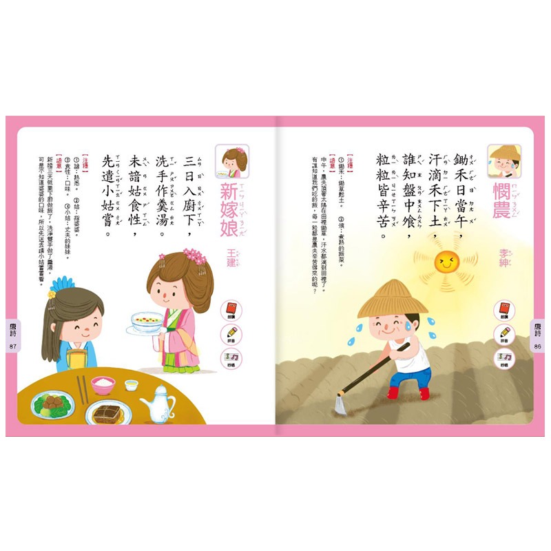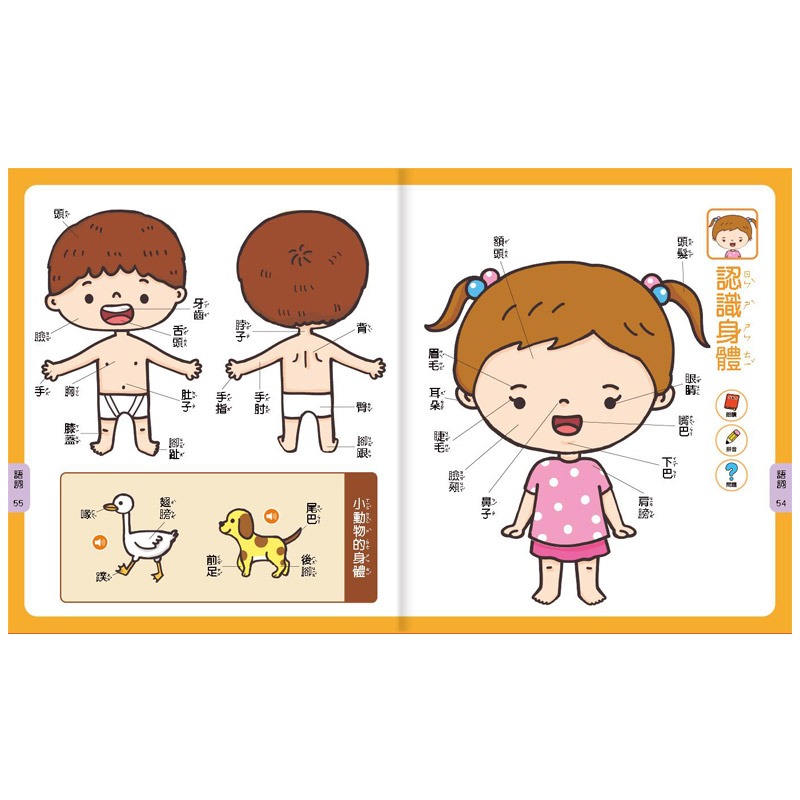 3.多元綜合的情境內容:本書內容豐富多元,主題貼近孩子生活,共有10個情境語詞單元、6首兒歌、6首順口溜、8篇唐詩、18句成語,引導孩子由口說進入符號學習 ,兼顧教育與趣味性。